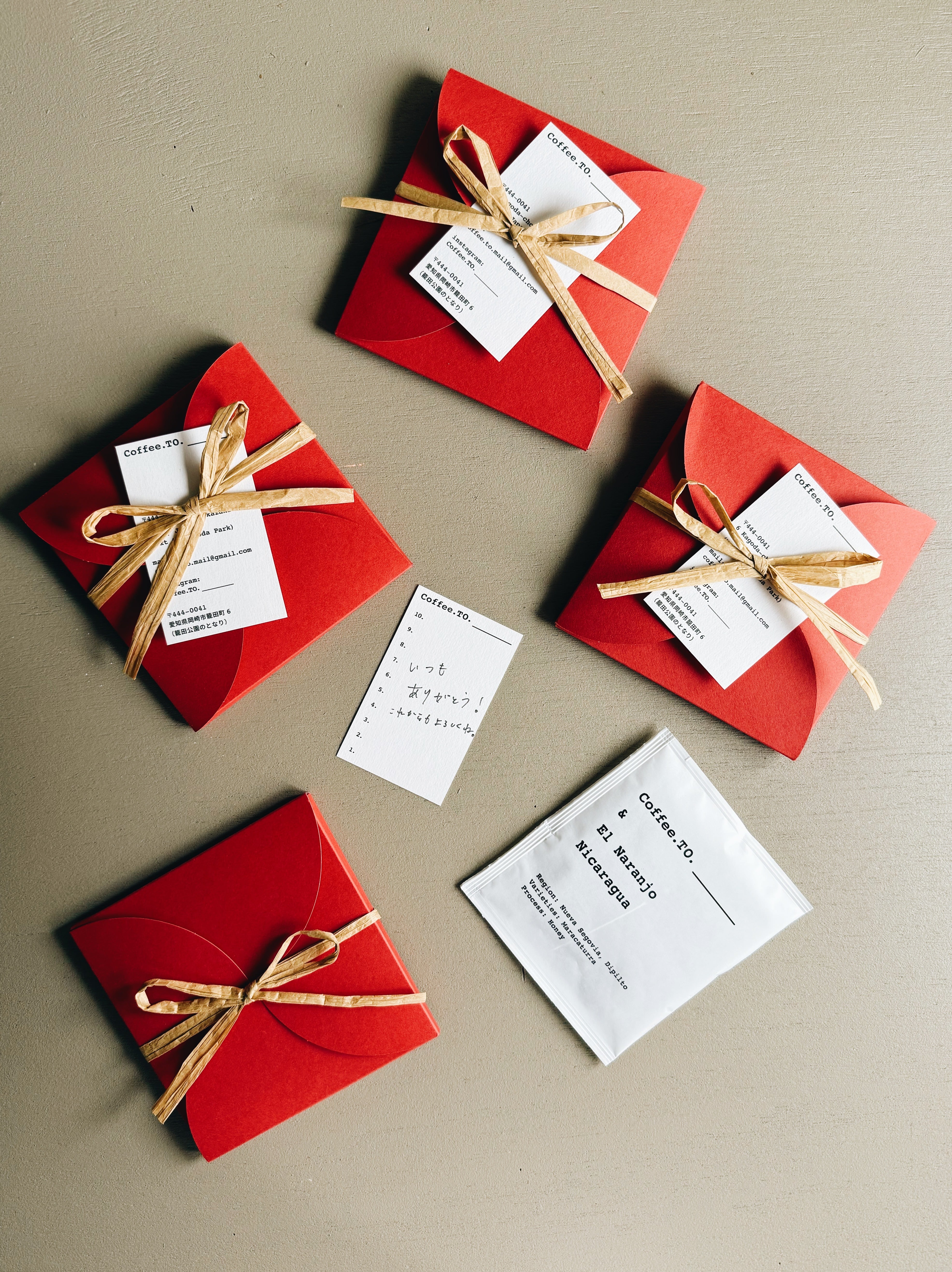 Coffee.TO.______の大人気商品。 カップとお湯だけで、 お店の味が楽しめるドリップバッグ。 3月ラストの特別セットとして、 プチギフト4箱セットをご用意しました。 さらに、お試し用に 1個を無料でお付けしています。 本日3/31ご注文分が対象です。